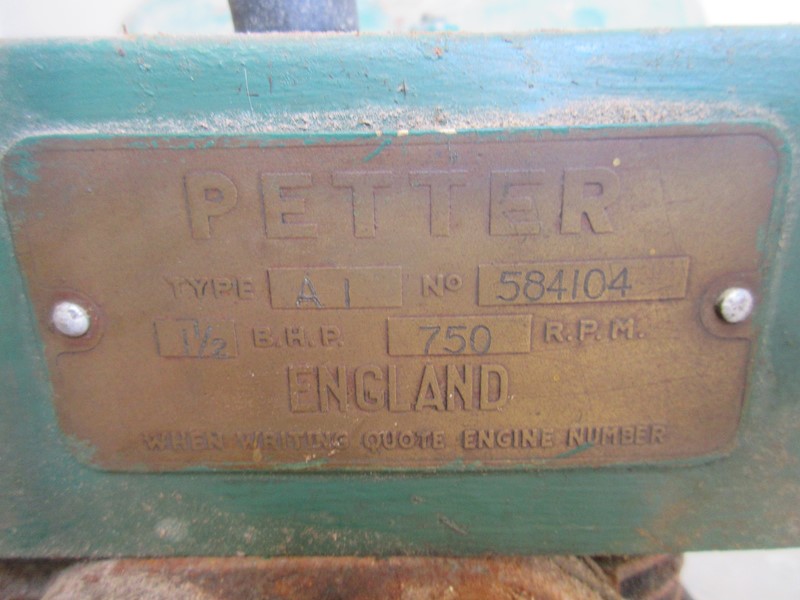 Klassieke benzine motor Merk Petter Type A1 1,5 pk 750 RPM Incl slinger Motor heeft langere tijd stil gestaan en is niet getest Compressie voelt goed en motorolie lijkt ok Zo meeneem prijs € 160,-