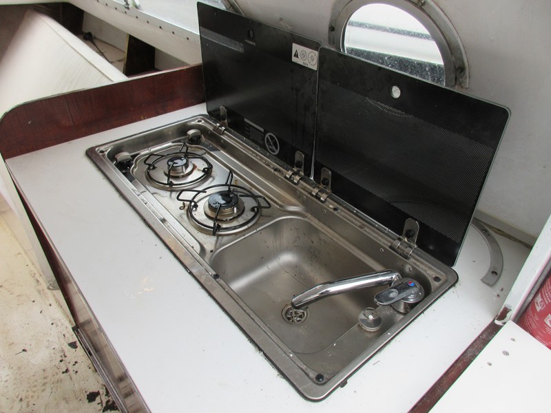 Incl 2 pits gasstel + spoelbak+ gasfles, zwemtrap, steun voor extra bbm, recent vluchtluik, werkende navigatieverlichting, 2x accu, bilgepomp, drinkwaterpomp enz...
