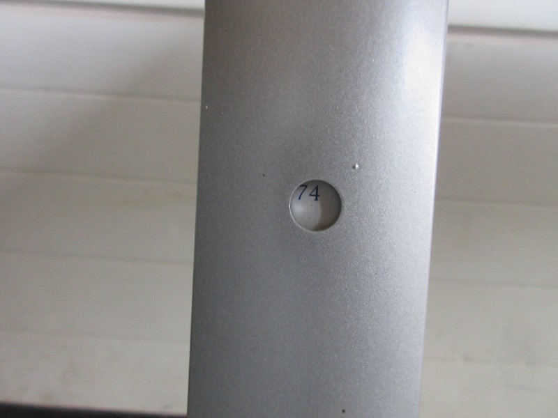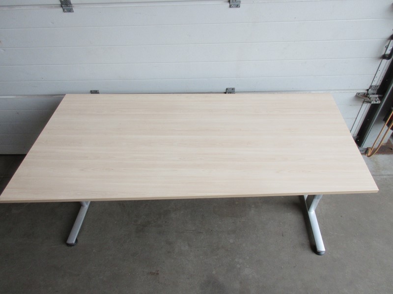Buro, tafel. Merk Marko. Lengte 180 cm. Breedte/diepte verloopt van 80 naar 90 cm. Hoogte is instelbaar. Staat nu afgesteld op 75 cm. Prijs € 75,-
