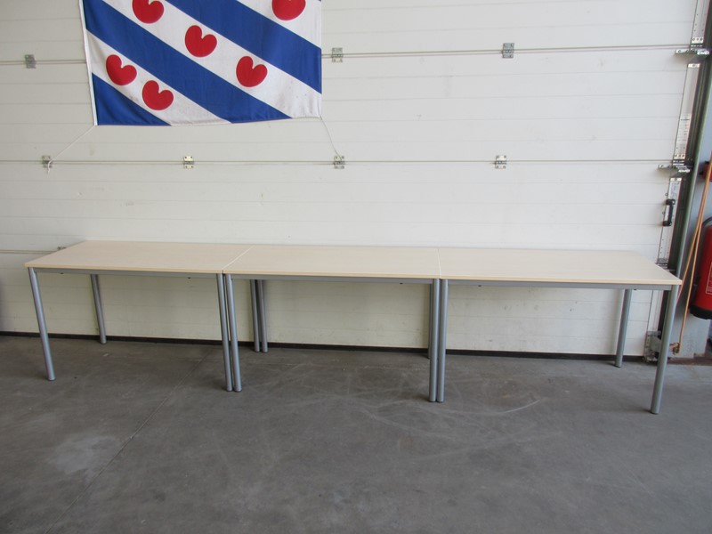 3x nette tafel, werktafel, werkbank, buffettafel. Afmetingen blad 120 x 60 cm. Hoogte is 76,5 cm. Merk Ahrend. Alle 3 in één koop € 75,-
