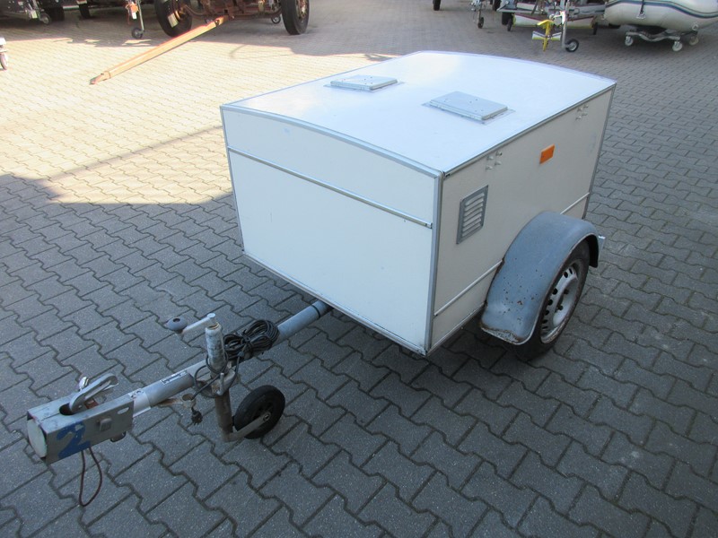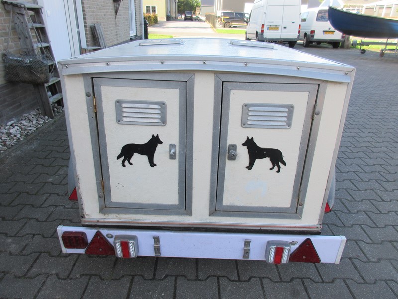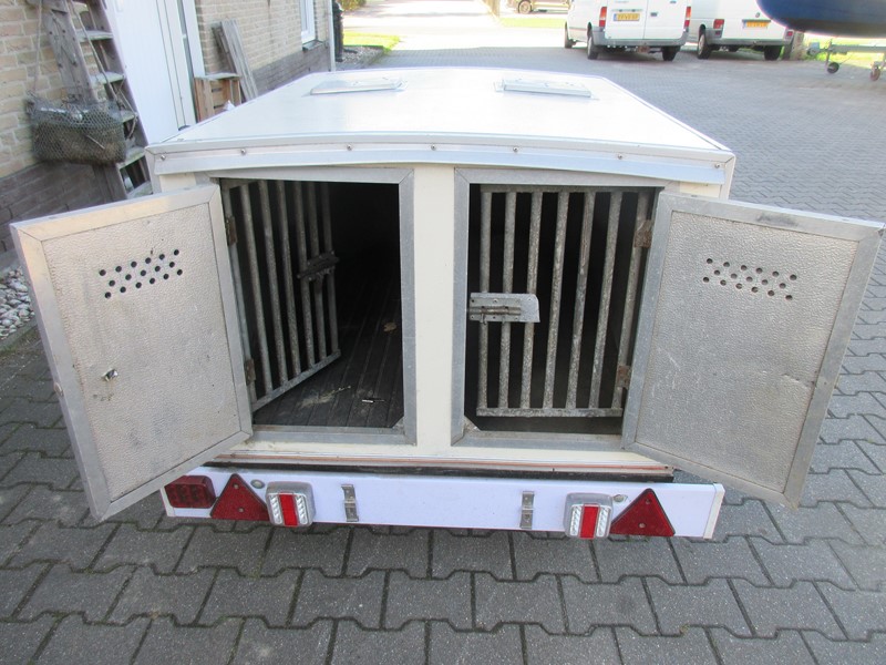 Het betreft een dichte aanhangwagen die in tweeën is opgesplitst.