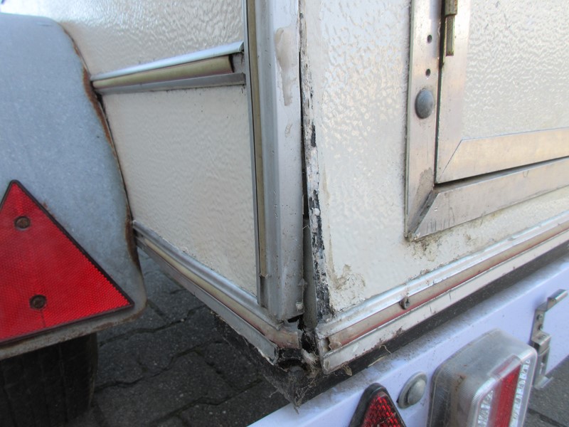 Er zit wat werk aan de aanhanger: o.a. het hoekpaneel+ scharnier linksachter zit los en de verlichting werkt niet.