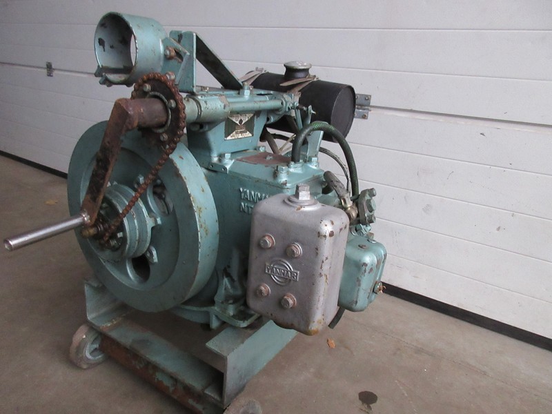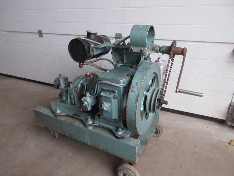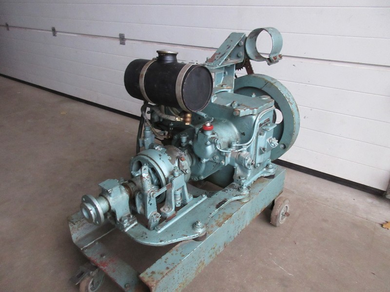 Nette oldtimer marinemotor op een verrijdbaar onderstel