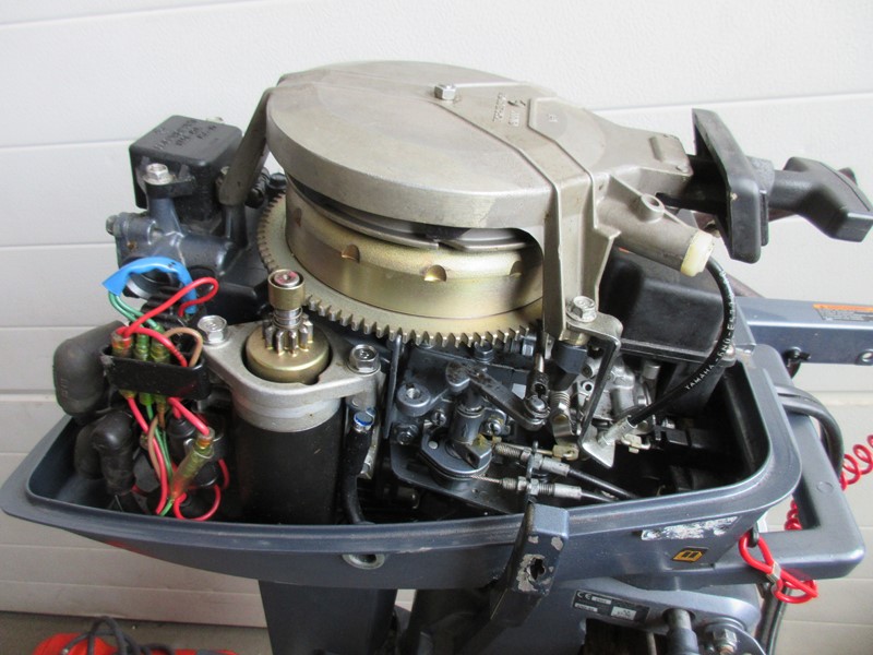 8 pk Yamaha Kortstaart Elektrisch startend (+handstart) 2 tact, 2 cilinder Werk schroef/propeller voor meer kracht Bouwjaar 1999 Knuppelbediening 12 liter kunststof benzinetank Heeft beurtje gehad Prijs € 895,-