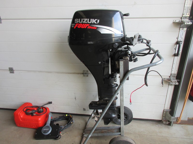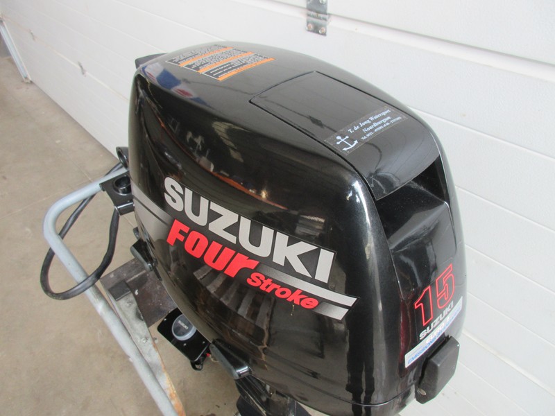 15 pk Suzuki Langstaart 4 stroke elekrisch startend Bouwjaar 2008 1-handel schakelkast (motorbediening) met contactslot 12 liter originele kunststof benzinetank Motor heeft een beurtje gehad Prijs € 1795,-