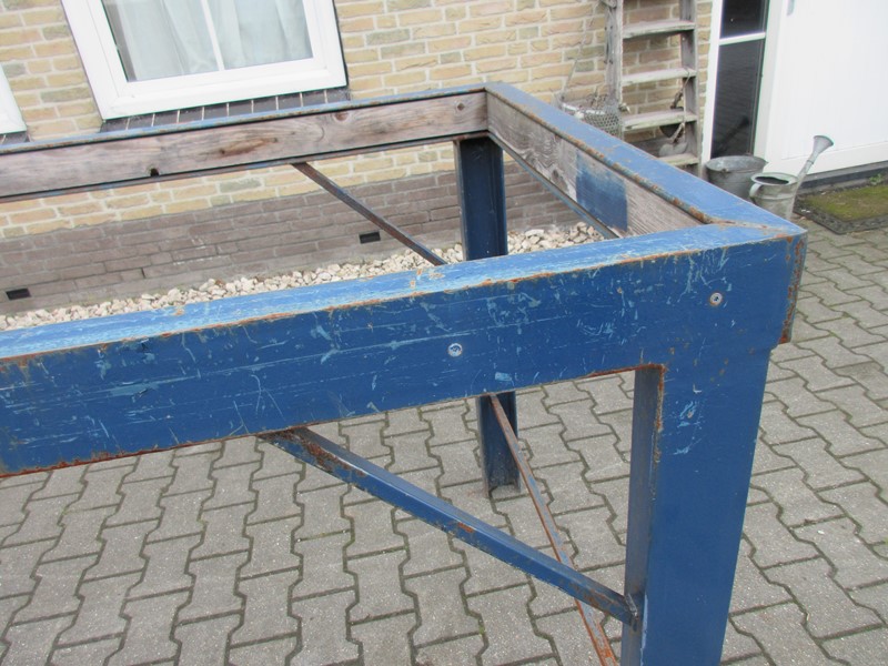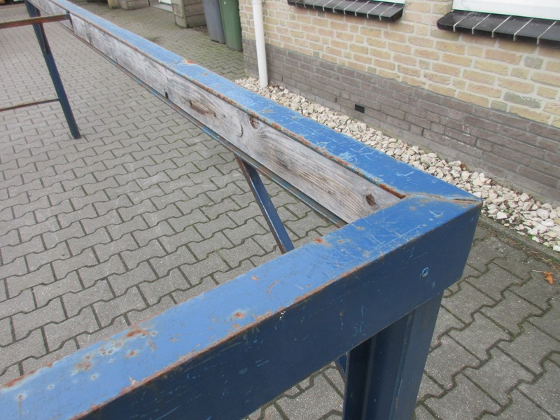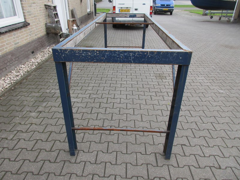 Zware degelijke bok voor de stalling van outboardmotoren. Rondom kunnen ongeveer 20 motoren hangen (voorraadbok) Lengte 3,40 meter. Breedte 1 meter. Hoogte 1,10 meter. Prijs € 250,-