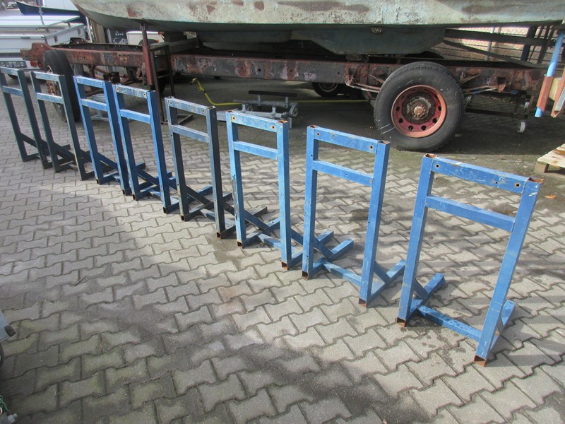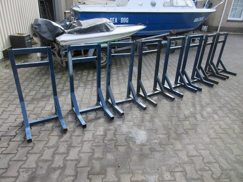 Partij bokken voor de stalling van outboards Degelijk uitgevoerd Hoogte 100 cm Diepte 55 cm Breedte 3x 46 cm, 2x 48 cm Zie verder de fotos Uitzoeken voor € 45,- p/st