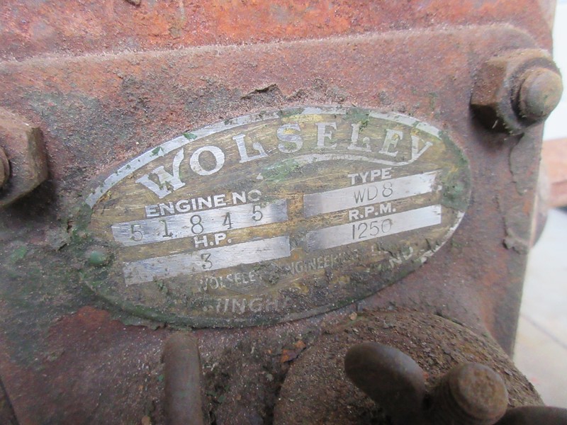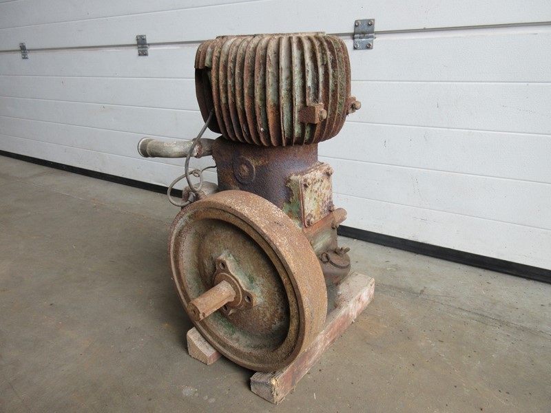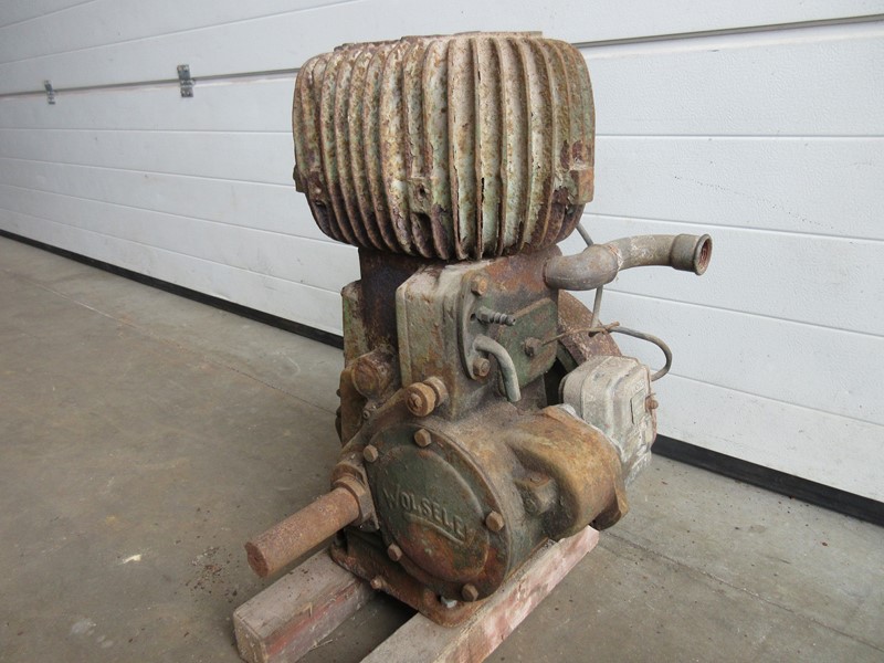 Oude engelse melkmachine motor Watergekoeld 1 cilinder Merk Wolseley Type WD 8 3 pk Toeren 1250 RPM Heeft op gas gelopen Motor is los, heeft goede compressie en motorolie Verder niet getest (zit geen slinger bij) Zo meeneem prijs € 165,-