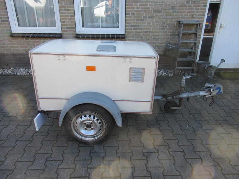 Het betreft een dichte aanhangwagen die in tweeën is opgesplitst.
