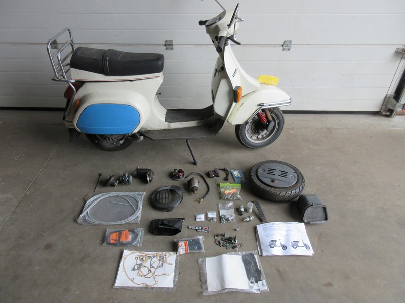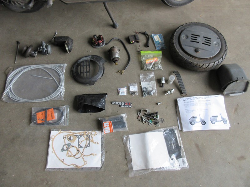 Enkele onderdelen, waaronder carberateur, zijn er af en zitten er los bij