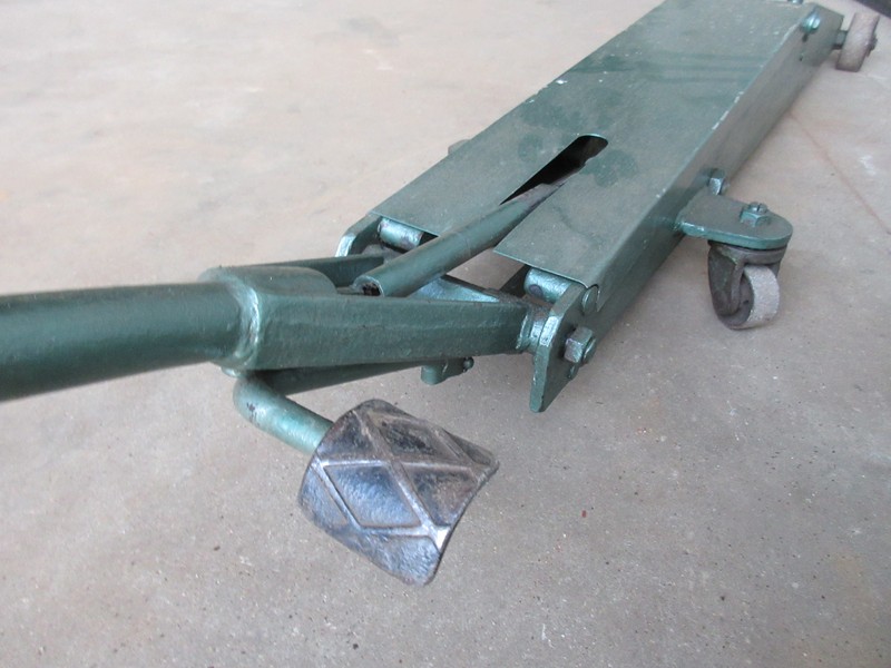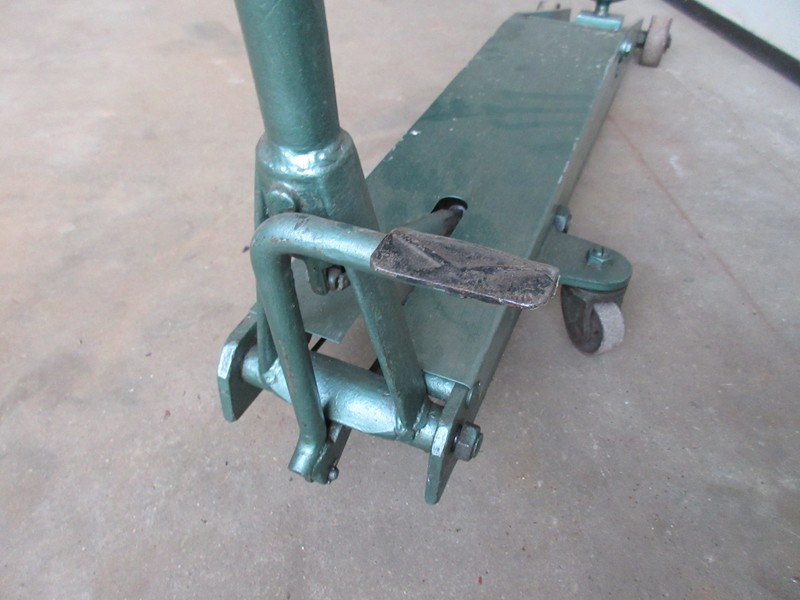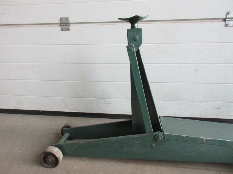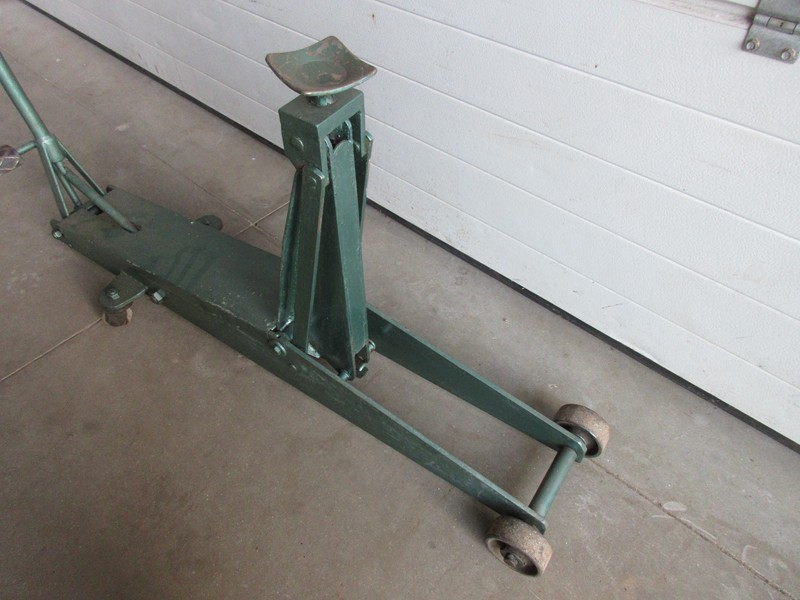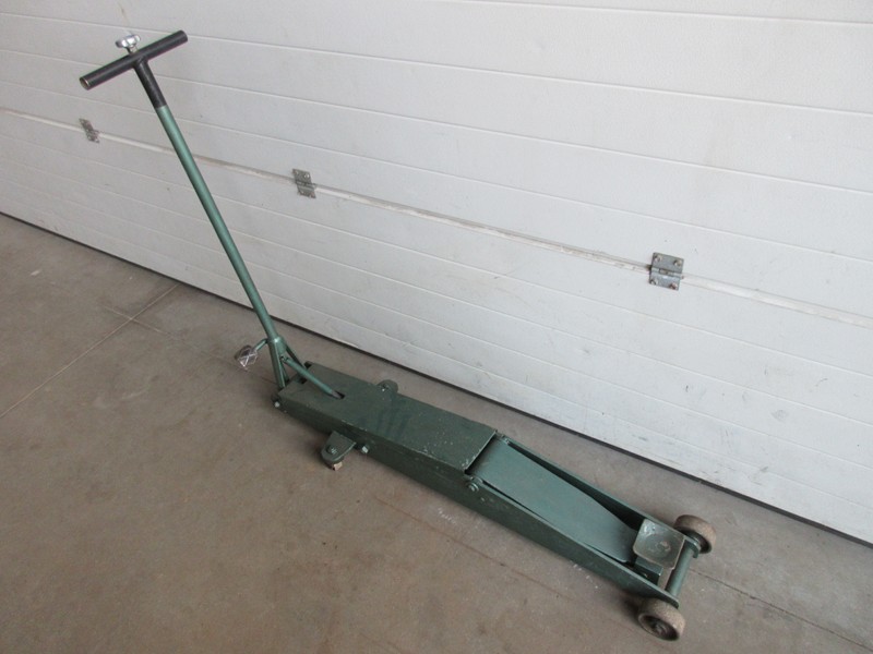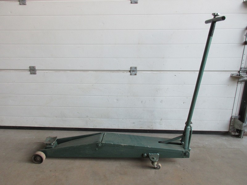 Degelijke klassieke garage krik minimale hefhoogte is 14 cm Mazimale hefhoogte is 66 cm Voetpedaal om onbelast snel te heffen Totale lengte is 130 cm Max breedte is 33 cm Verrijdbaar Hefcapaciteit is onbekend Prijs € 185,-