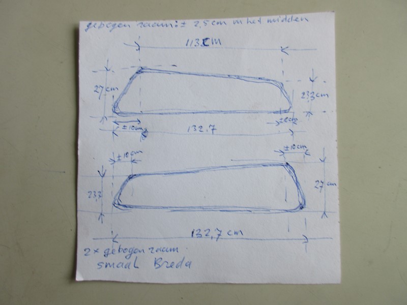 Ze zijn geheel gebogen, over de lengte is de holte in het midden 2,5 cm