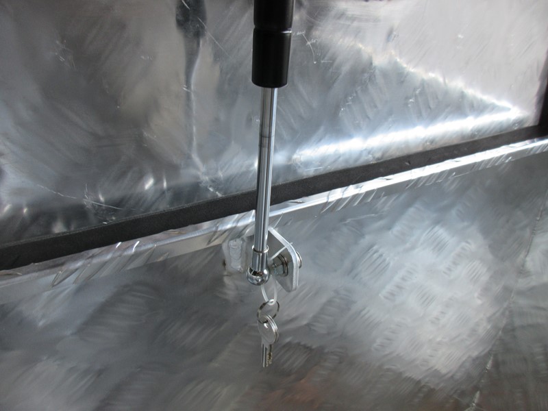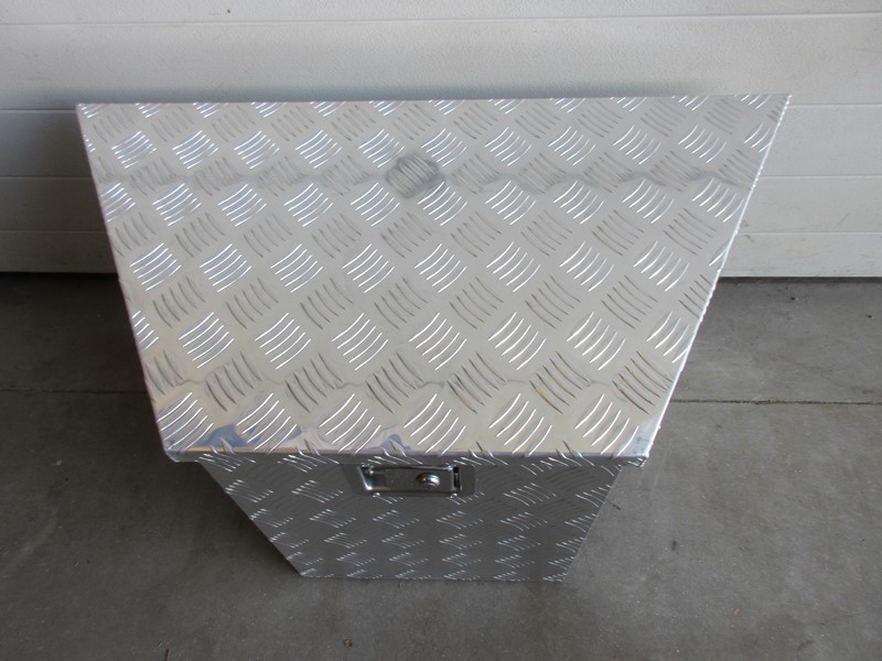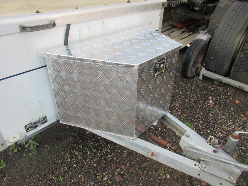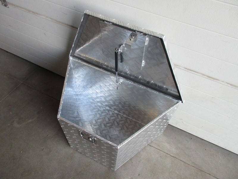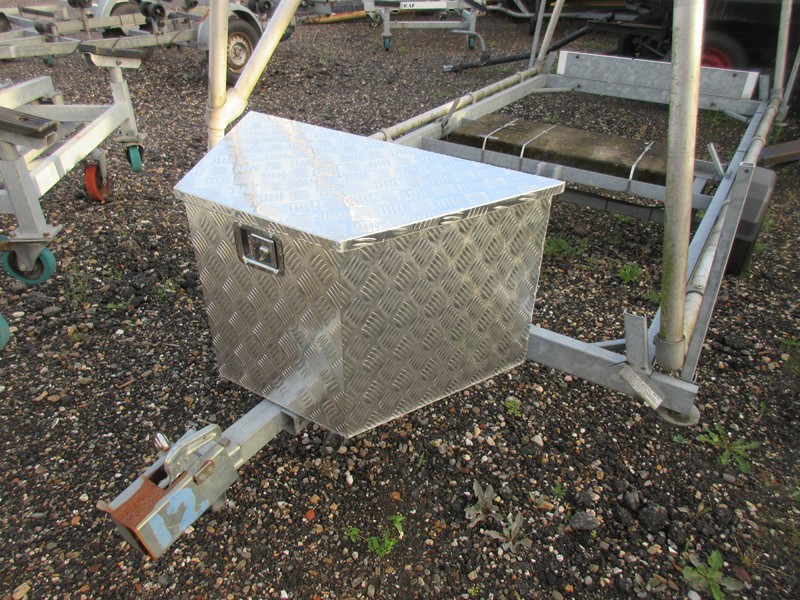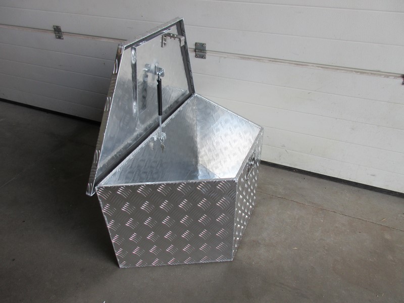 Lichtgewicht opbergkist welke op de dissel van de aanhangwagen gemonteerd kan worden.