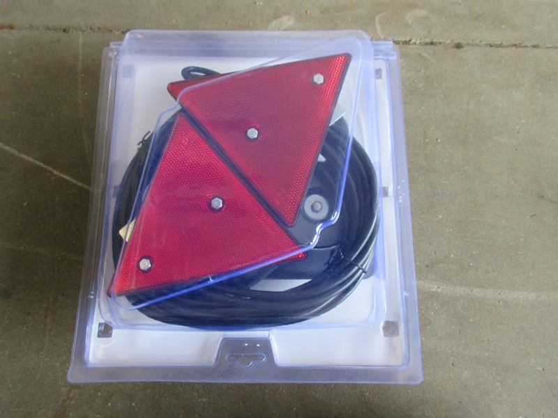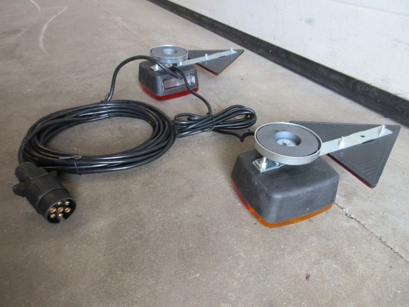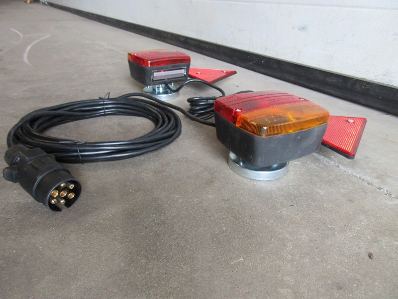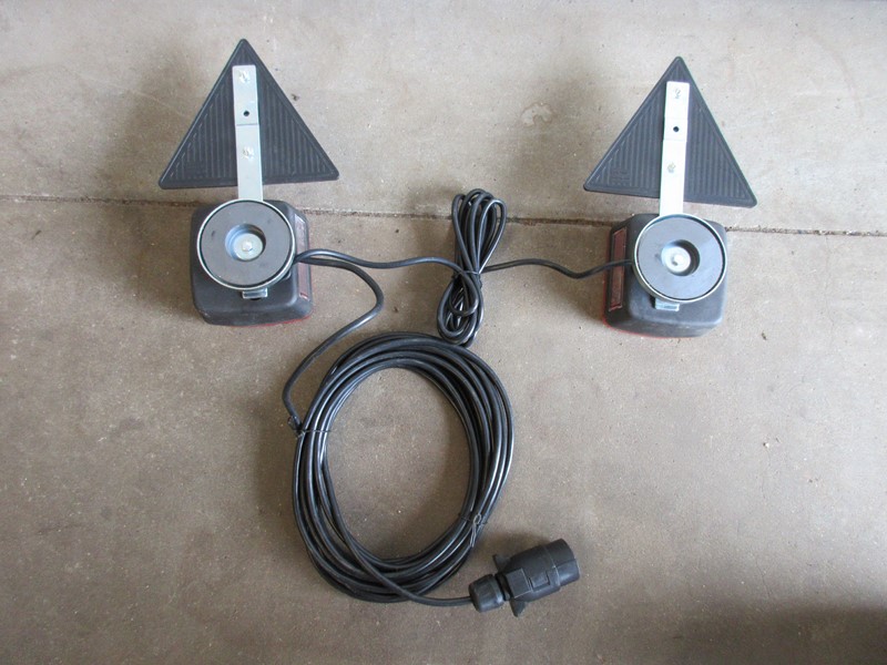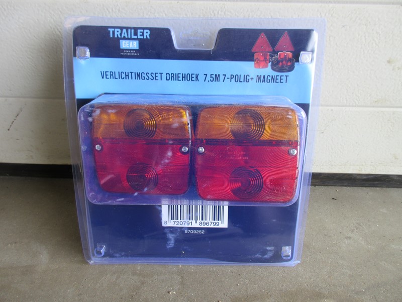 12 Volt magneet verlichtingsset 7,5 meter kabel en tussen de lampen zit 2,5 meter kabel 7-polige stekker Incl 2 reflectie driehoeken met montagesteun Geleverd in blister verpakking Prijs € 32,-